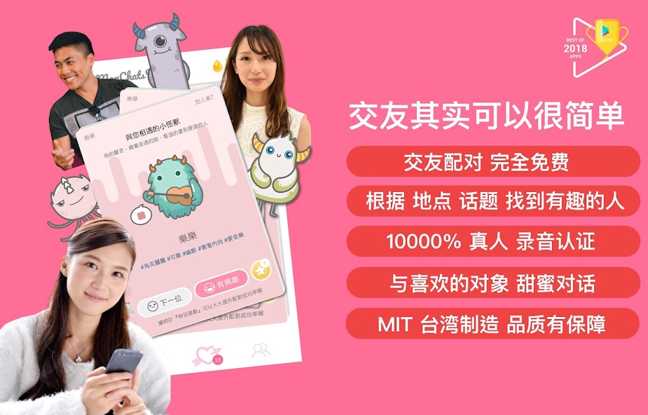 Соответствовать. Чат. Дата. MonChats легкий и веселый - используйте функцию «Голос и лайк», чтобы любить кого -то. Если ты кому -то нравится, это матч! Мы изобрели двойной выбор, чтобы два человека соответствовали только во время взаимного интереса. Нет стресса. Нет отвержения. Просто пройдите профили, которые вас интересуют, пообщайтесь и голосуйте онлайн со своими матчами, затем отойдите от вашего телефона, встретитесь в реальном мире и зажмите что -то новое.